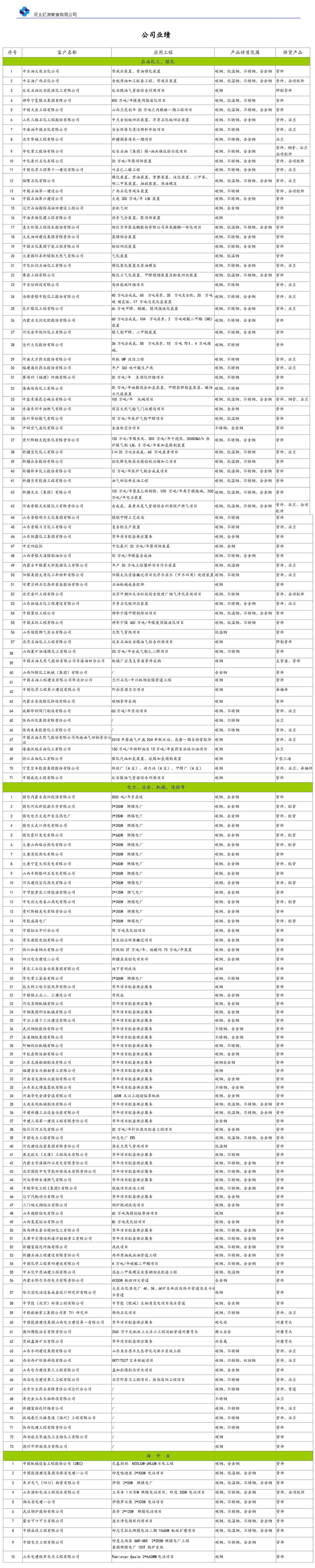 業(yè)績一覽表